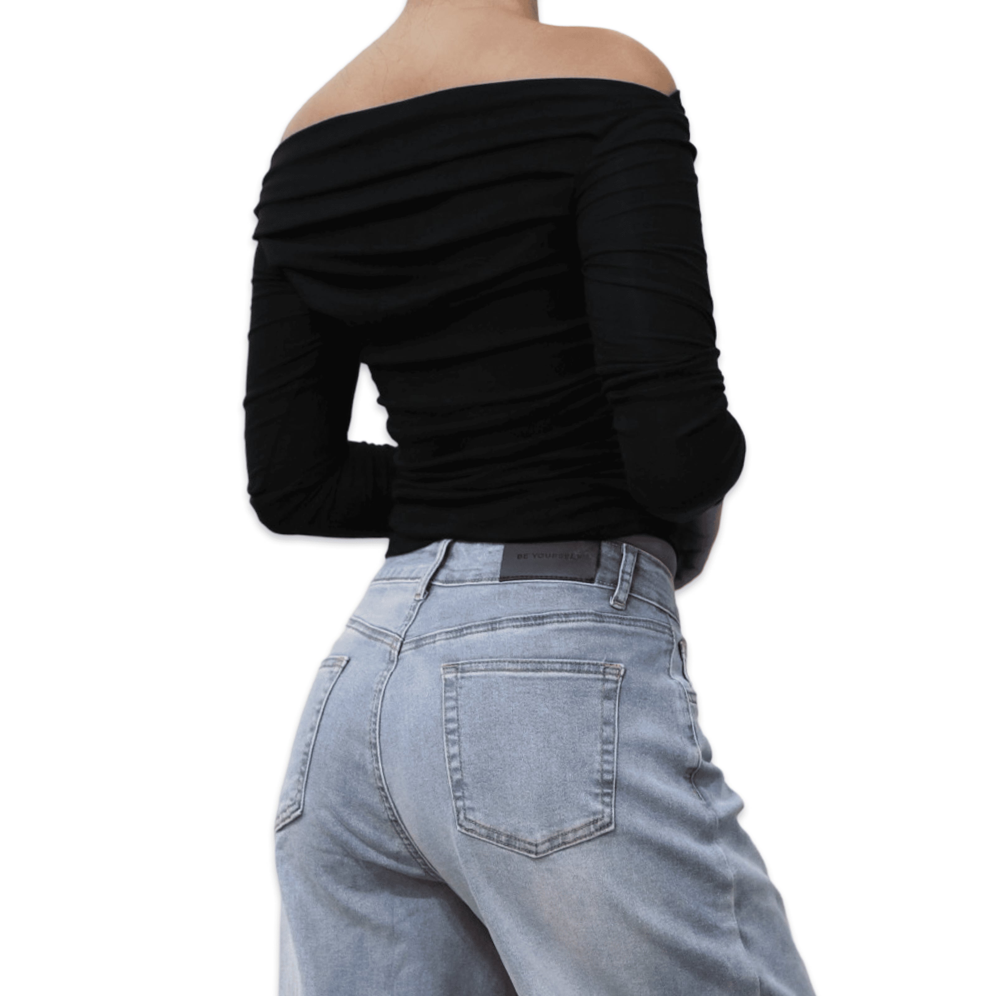 パッド付きオフショルダー 長袖 ブラック