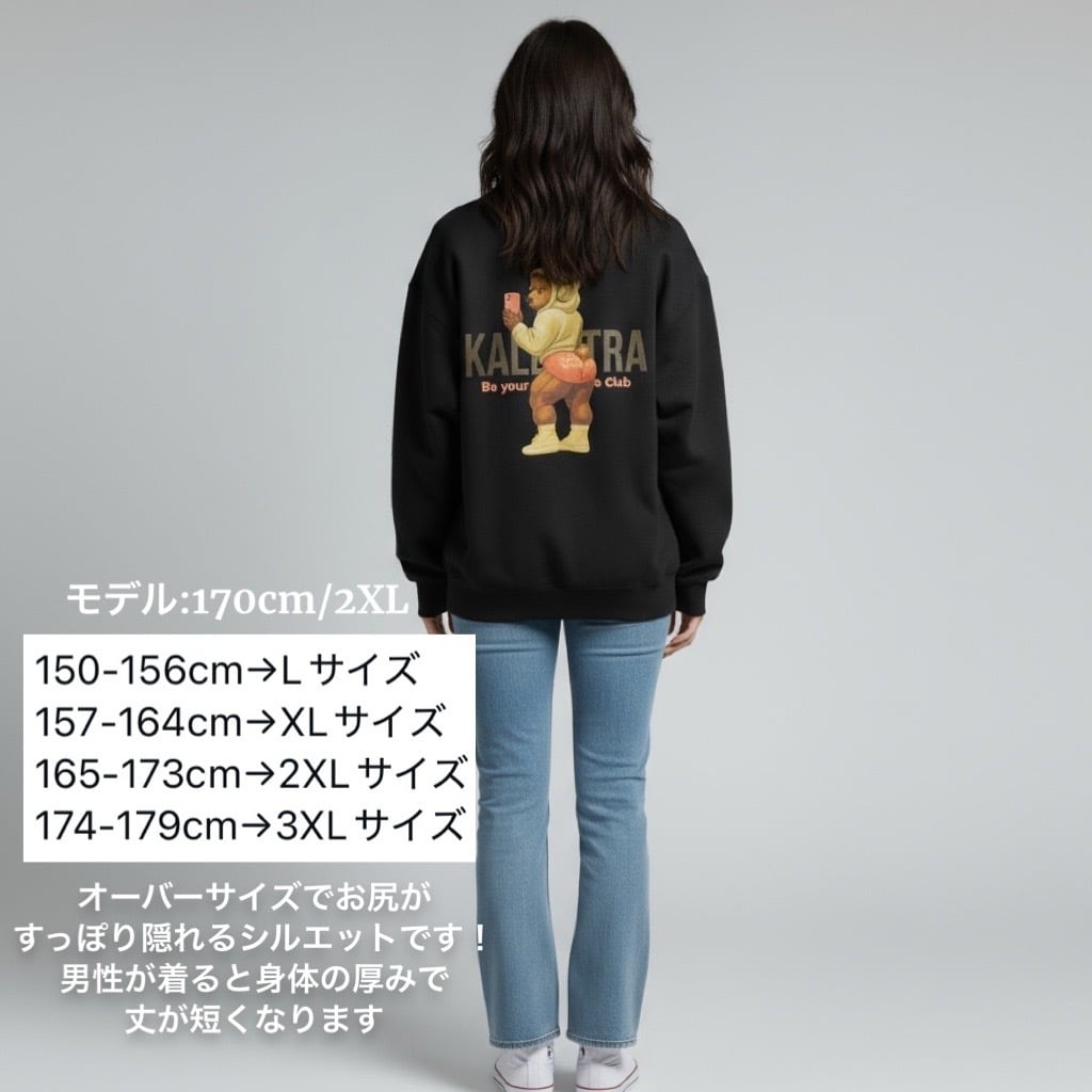 サイズは元々メンズサイズなのでオーバーサイズです。お尻がすっぽり隠れて可愛いシルエットです!