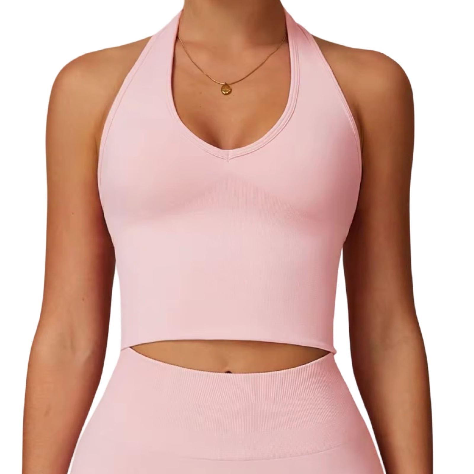 Vネックホルターネックトップス ピンク