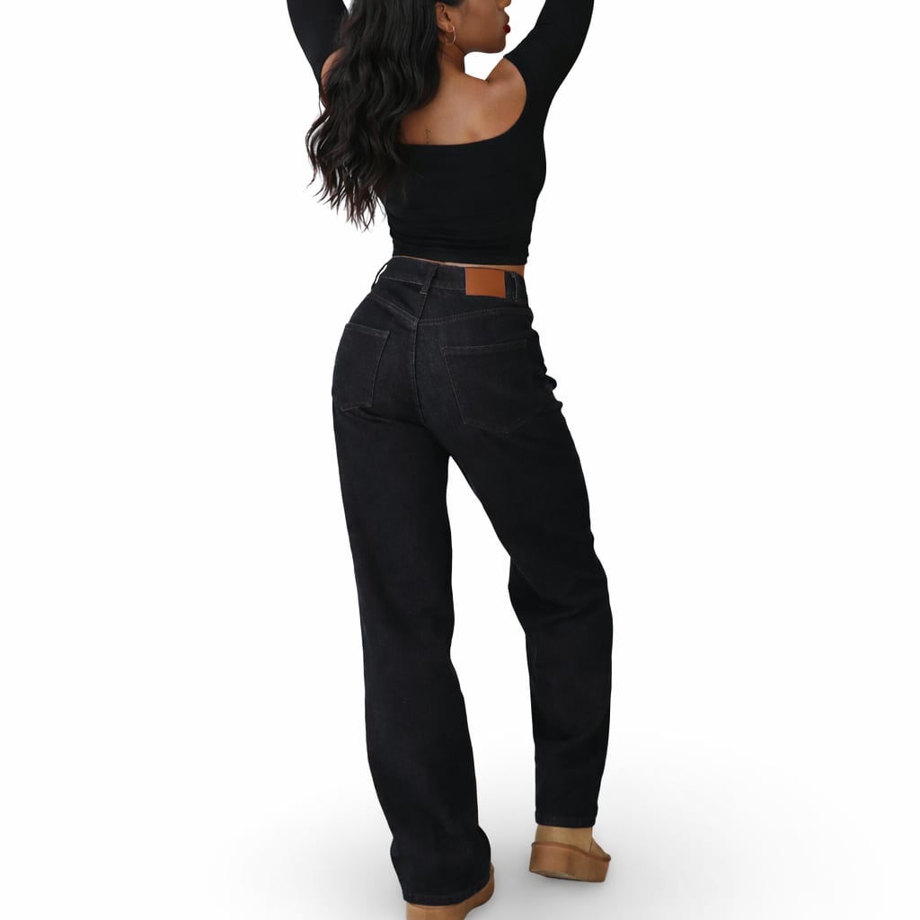 美シルエットワイドストレートジーンズ ネイビー