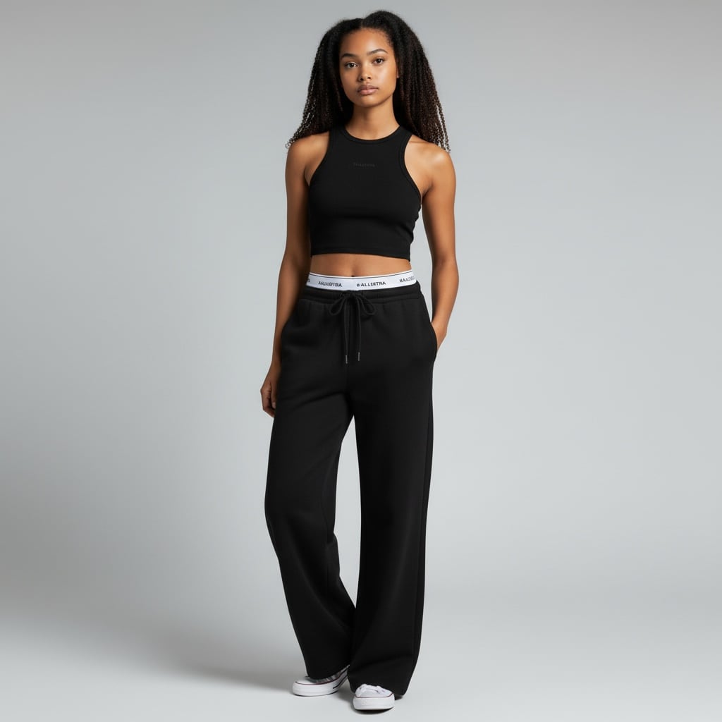 ロゴバンド付きワイドパンツ ブラック