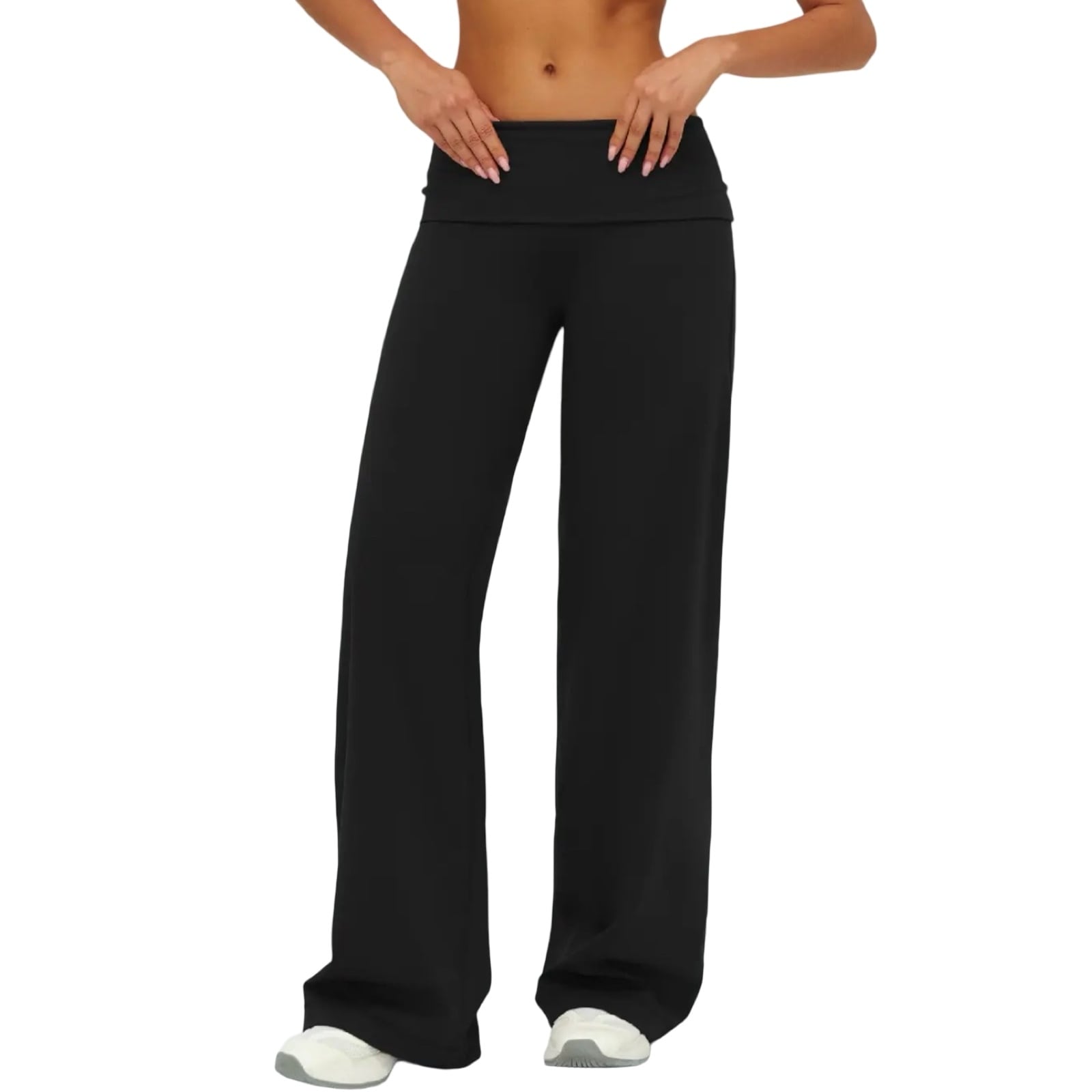 折り返しがかわいいローライズパンツ。私服にも使えるアイテムです。生地は比較的厚手のヨガ素材で伸縮性高め。クロップトップと合わせると可愛い!