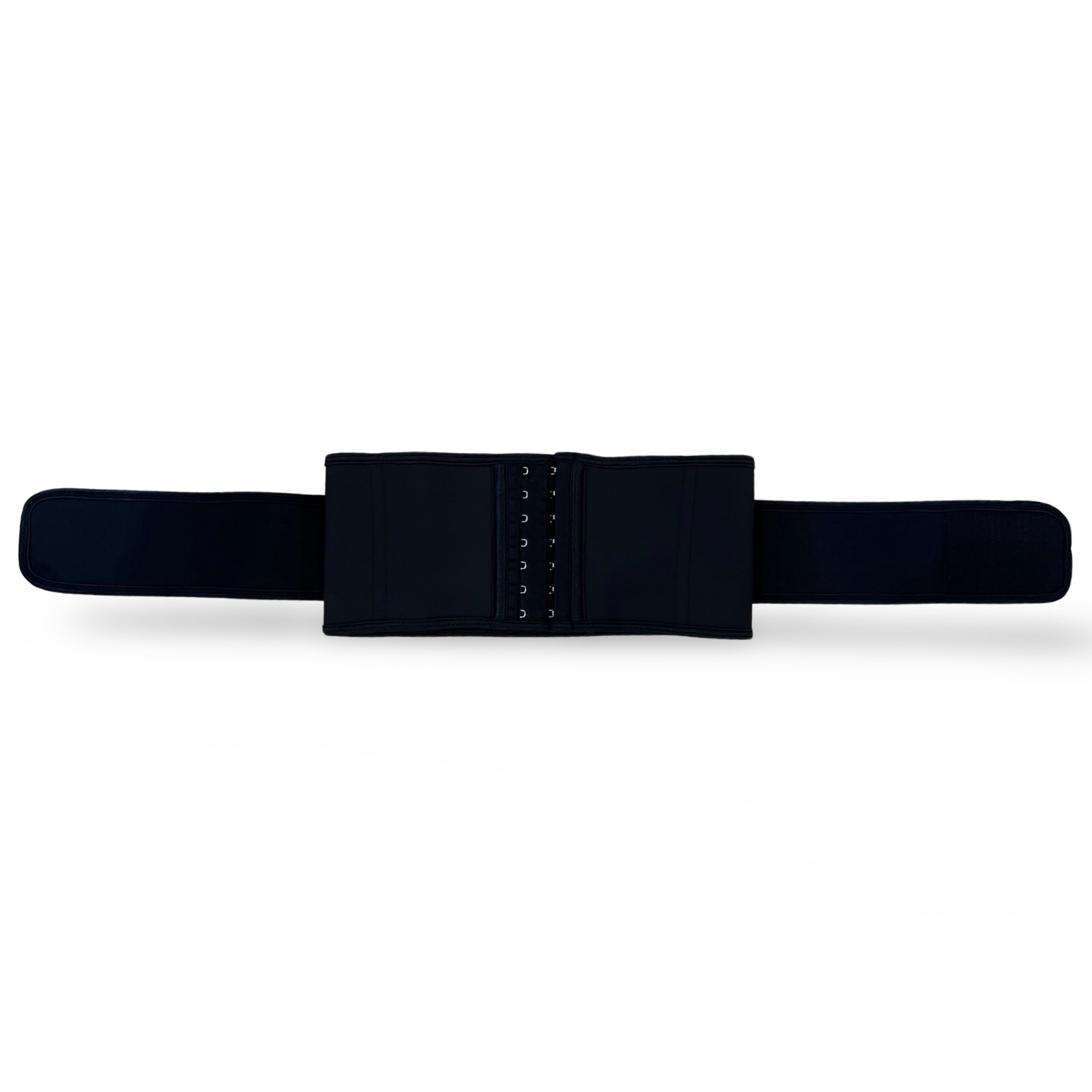 ラテックス製で強い締め付けを実現。3段階のフックでキツさを調整可能。上のベルトも取り外し可。