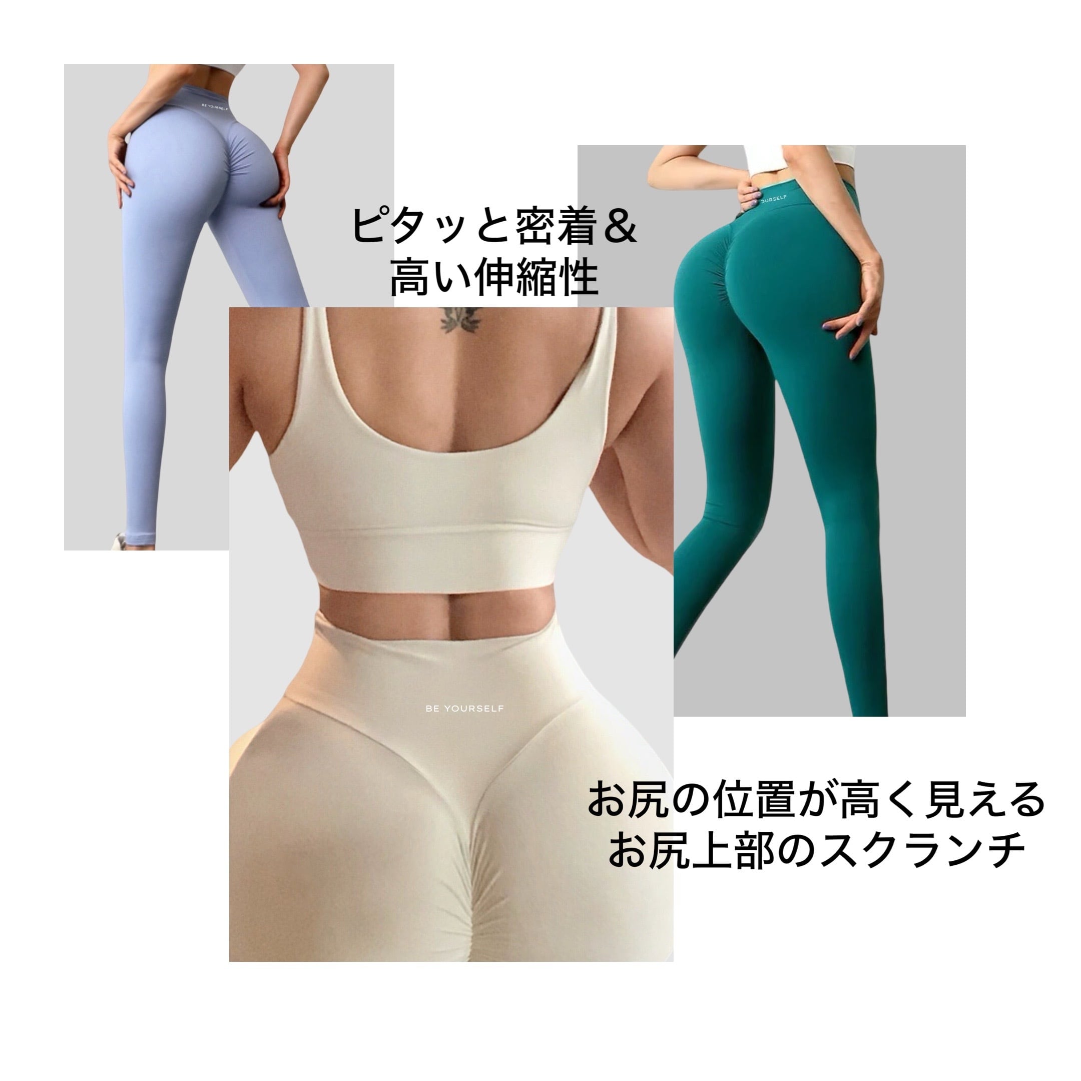⒉レギンスの持ちが最もいいのはシームレス素材且つお尻に装飾のないシンプルなデザインです。お尻に装飾があることで多少は破損のリスクが高まります。予めご了承ください。